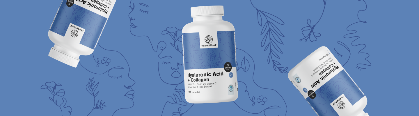 In de combinatie van Hyaluronzuur + collageen zitten naast collageen en hyaluronzuur ook zorgvuldig geselecteerde 4 vitaminen en mineralen en bamboe-extract.