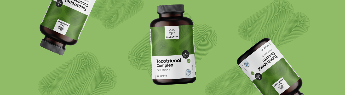 Daarnaast bevat dit complex ook tocotriënolen, speciale bioactieve stoffen die tot de bredere familie van vitamine E behoren. Dankzij hun unieke moleculaire structuur worden tocotriënolen goed door het lichaam opgenomen, waar ze volledige ondersteuning bieden en het evenwicht in het lichaam helpen behouden.